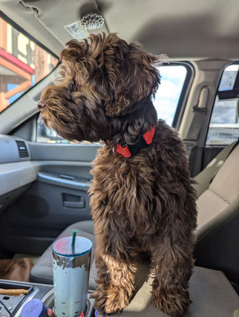 Meet Beans (Brown Ribbon Boy). Beans is such a special little guy. He's our little lover boy with a big heart in a small package. As the smallest pup in the litter, he’s expected to weigh around 15–18 lbs when fully grown. Beans has the perfect balance of playful energy and cuddle-loving sweetness, and he's always ready to roll over for belly rubs. One of his favorite games is sitting patiently by the toy bin, eagerly waiting for a new toy to be brought out so he can race after it. He absolutely loves the big yard and can play for hours — chasing or being chased by his doggy friends — until he finally tires out and curls up for a cozy nap. Beans has completely stolen our hearts, and with just one look into his eyes, you’ll fall in love too.